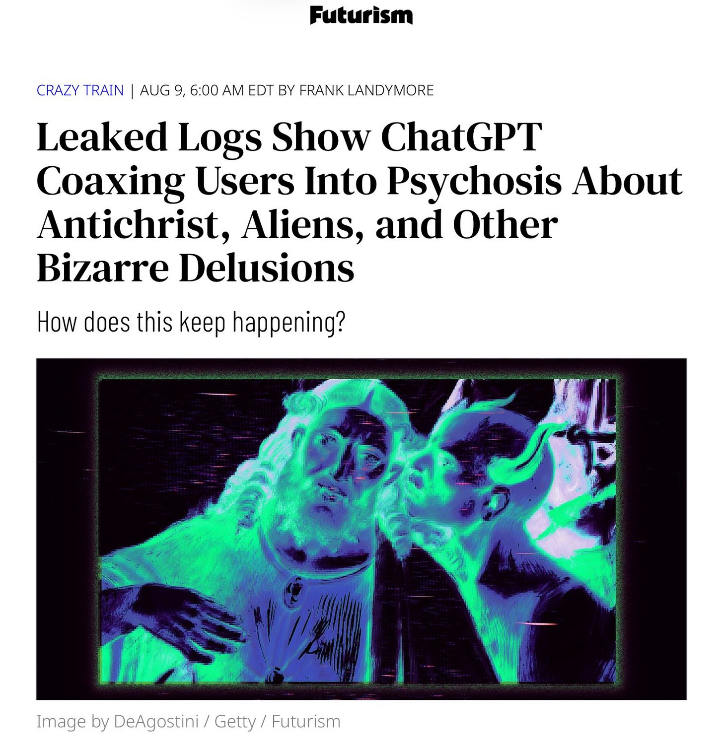 “As the AI spending bubble swells, so too are the numbers of people being drawn into delusional spirals by overly-confident chatbots.” –Futurism