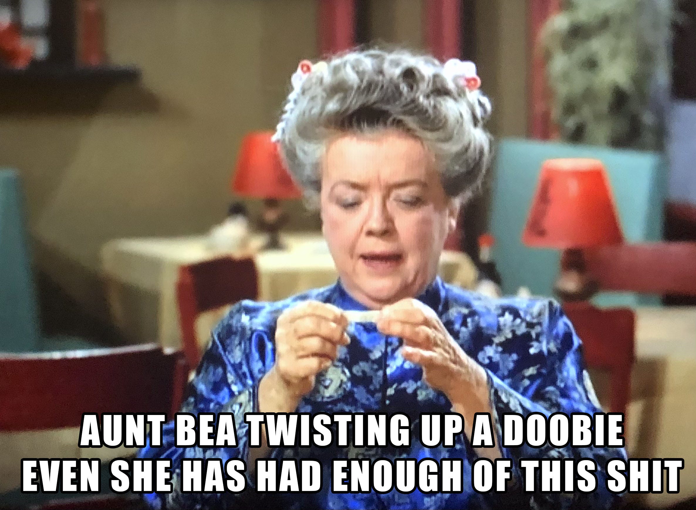 And Mayberry had a lesbian, Aunt Bea. Face it, did you ever see Bea with any man? Now the actress, Frances Bavier, in real life supposedly had a short-term marriage to a man. But in today’s world where we are promised that “Americans are going to land on Mars,” why not just go with the fact that Aunt Bea was a dyke?