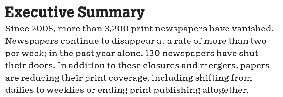 Cable news is dying with viewers fleeing to independent media. Newspapers have cratered and local newspapers are a quaint thing of the past.