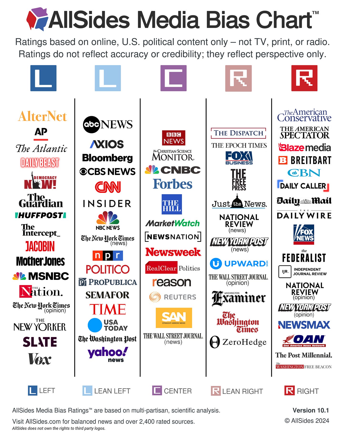 “News outlets have an incentive to be partisan — it helps them to earn ad revenue, especially if they use sensationalism and clickbait. But when we stay inside a filter bubble, we may miss important ideas and perspectives from the other side.”-- allsides.com