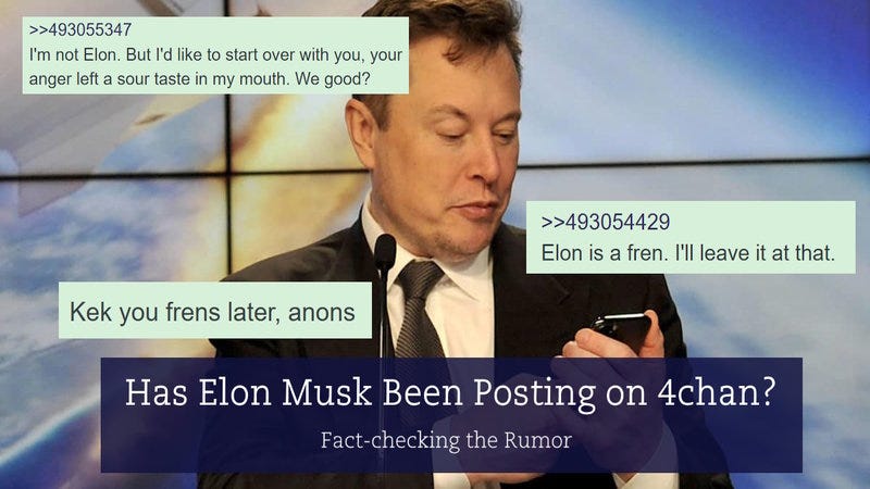 When you have lost 4chan, and even the Nazis on 4chan are shitting on you, you’ve lost. This prompted Adrian Dittman to make an appearance on 4chan on New Year’s Day to defend his ‘fren’ Elon. The world’s richest man, in a sad, pathetic attempt to ‘look cool,’ took to 4chan as an alt account to talk about how awesome Elmo Musk is. Holy shitballs, Batman. You cannot make this stuff up.