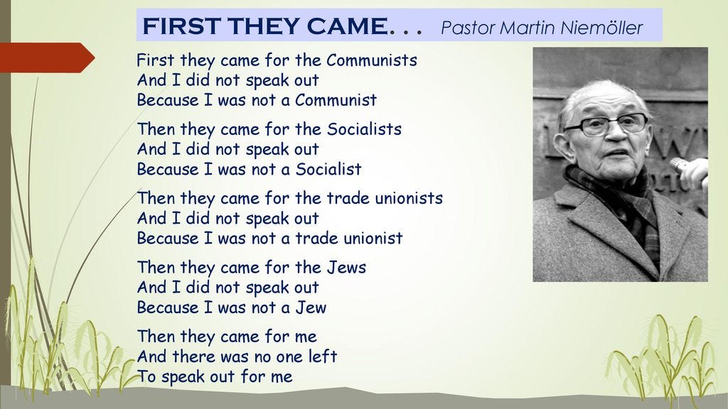 You can see clearly the pattern. It starts with “transpeople,” then to the “brown people,” then it will be the “old people” and will eventually consume everyone who doesn’t lick their boots. You know how the poem ends.